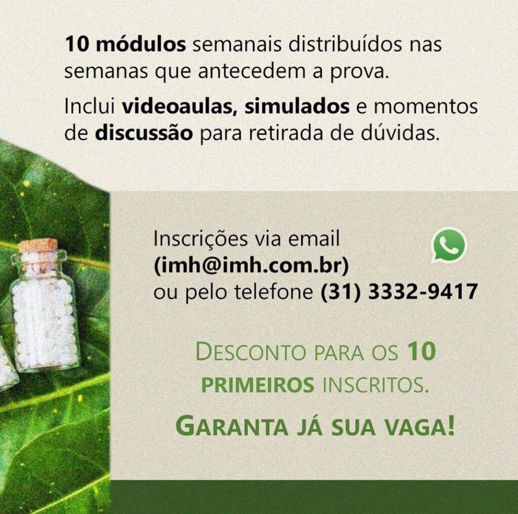 O Instituto Mineiro de Homeopatia abre inscrições do curso preparatório para a prova de Título de Especialista.